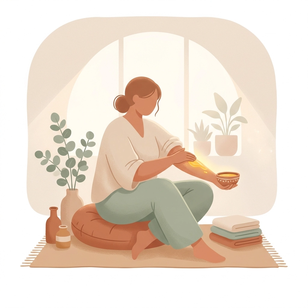 Enter Abhyanga (pronounced ab-YAN-ga), an ancient Ayurvedic self-massage practice that's been supporting mothers for thousands of years. And before you scroll past thinking this is another impossible wellness trend, stick with me. This one's actually designed for real life.